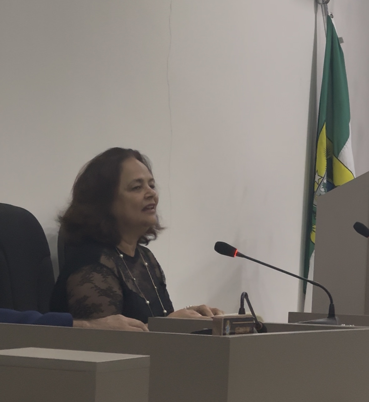 A professora e escritora Marise Mamede recitou poema do acervo da mãe, Maria José Mamede Galvão.