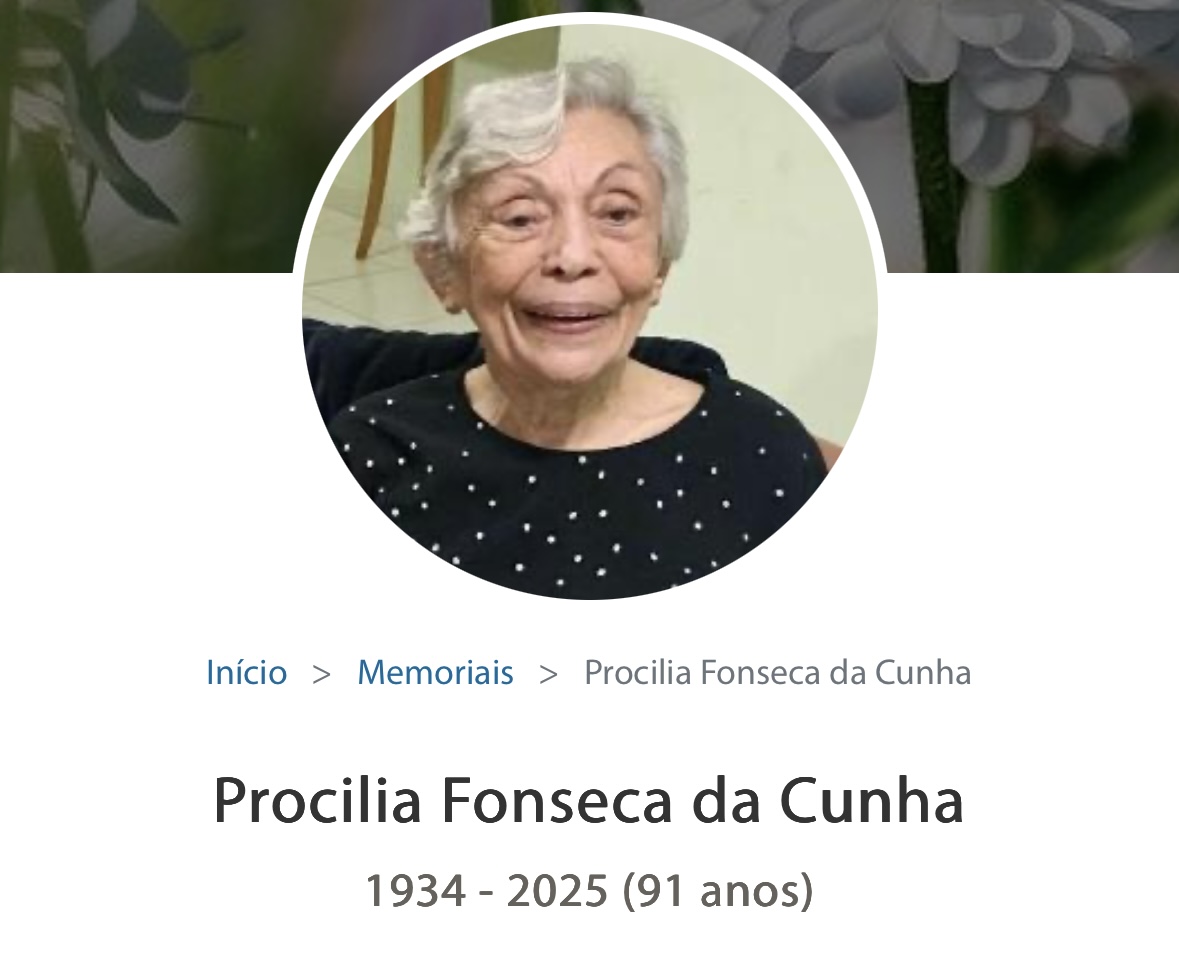 Morreu nesta segunda-feira (3) em Natal, aos 91 anos, de problemas pulmonares, a ocupante emérita da cadeira 27 da Academia Norte-rio-grandense de Odontologia, Procília Fonseca da Cunha.