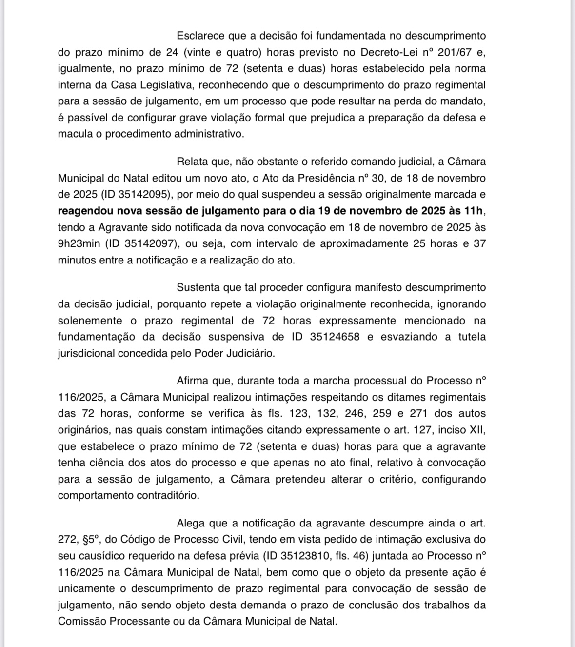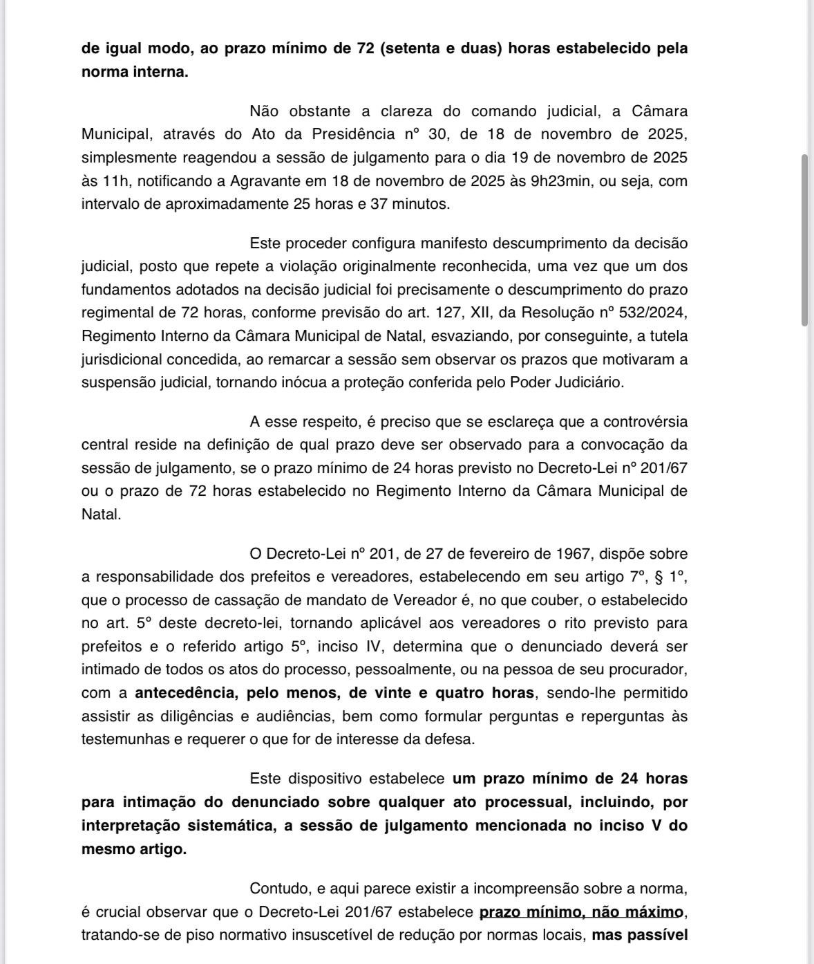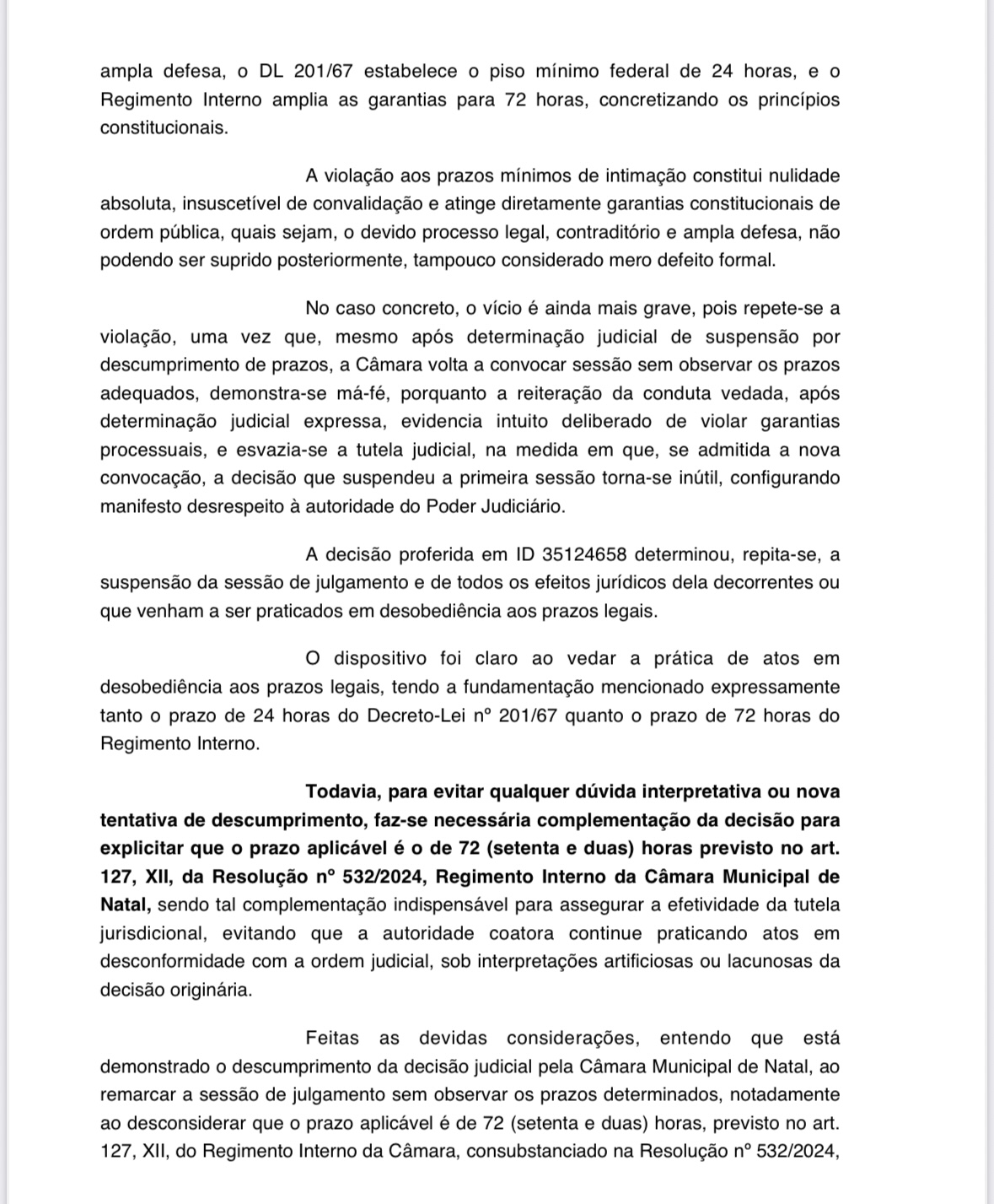 Para a Câmara, o prazo entre a notificação das partes e a realização da sessão é de 24 horas, como manda o regimento, e não de 72h, como reza a lei.